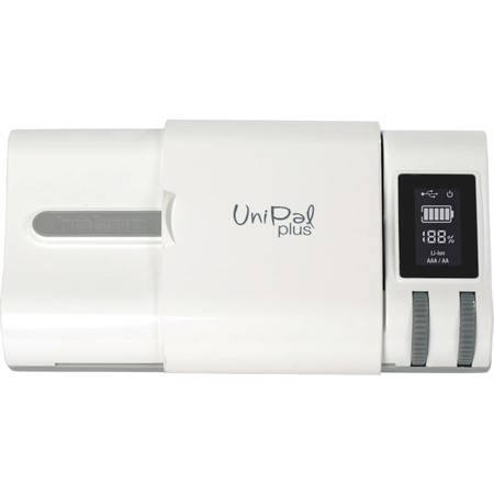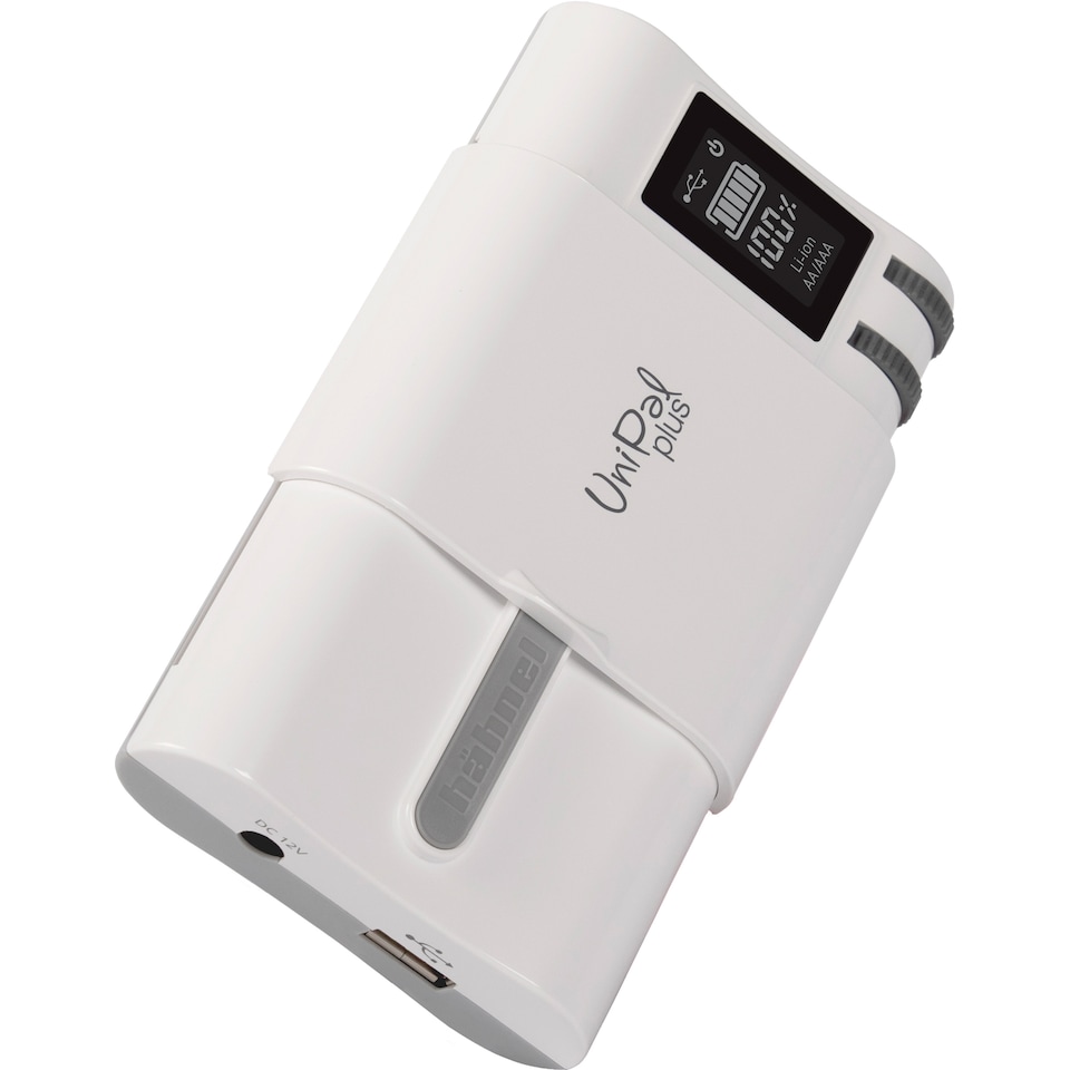 Ladda nästan vilket batteri som helst med Hähnel Powerstation Unipal Plus batteriladdare, med kontakter med dubbla lägen för laddning av ett flertal batterier och ett finjusteringshjul för att enkelt justera laddarens kontakter. Denna universalladdare levereras med en LCD-display som visar batteristatus. Den har också ett separat AA/AAA-batterifack för säker passform.