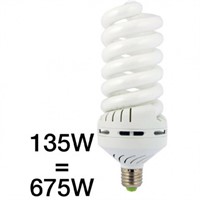 Denna spirallampa för dagljus har en effekt som kan jämföras med en vanlig glödlampa genom att multiplicera den med en faktor på 5. En 135W spirallampa motsvarar alltså en 675W glödlampa.